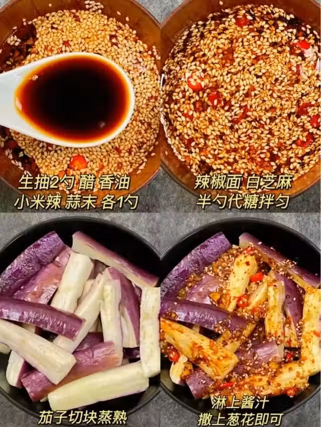 鍋中油熱爆香蔥、蒜、干辣椒,加1勺生抽,2勺白醋,少許鹽、糖、雞精翻炒均勻。