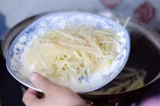 炒土豆絲,切完直接下鍋,難怪不脆還發黏,多做1步,爽脆不粘鍋
