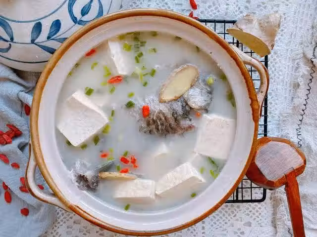 【原材料】鯽魚、豆腐、小蔥、枸杞、食鹽、料酒、白鬍椒粉;