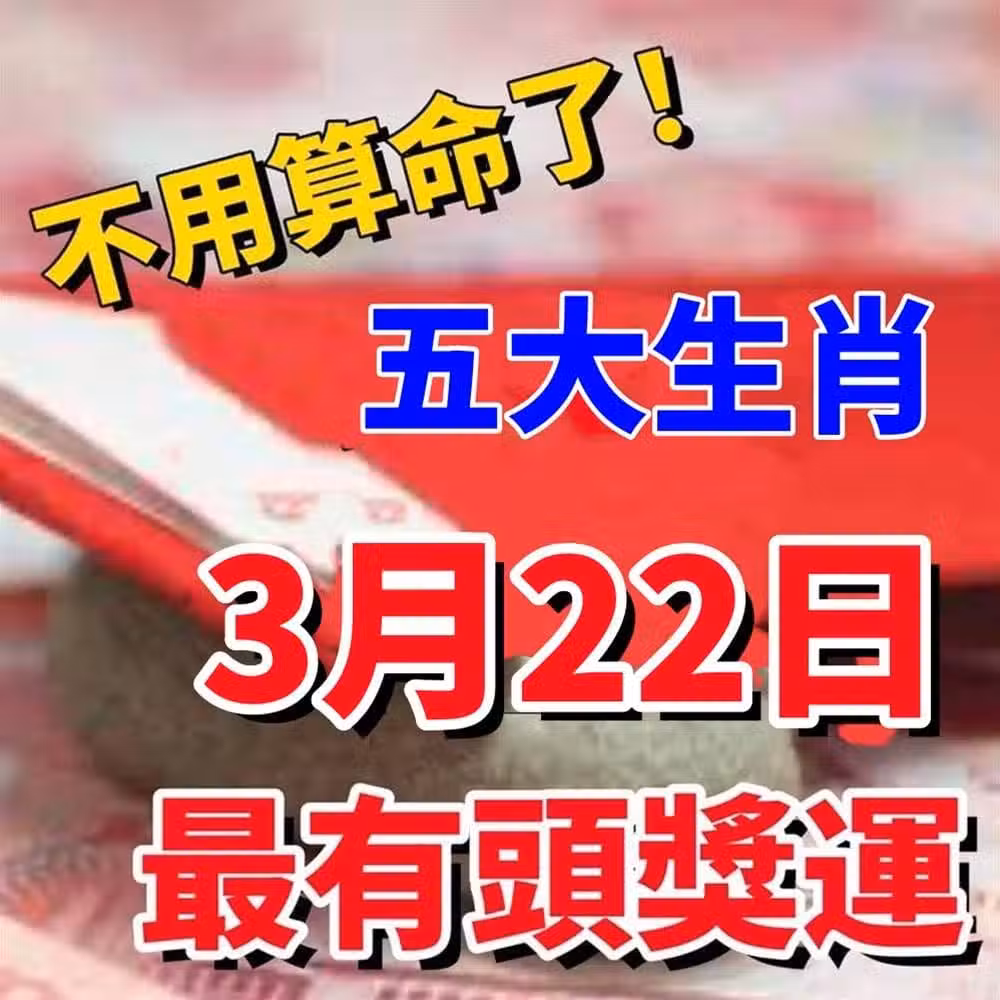 五大生肖:3月22日開始最有頭獎運