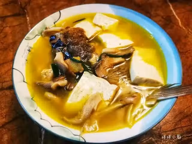 所需食材:鰱魚頭、嫩豆腐、姬菇適量、生薑、香蔥、料酒、鹽、白糖 、食用油。