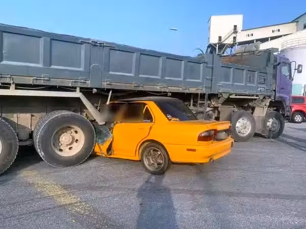 (馬六甲26日訊)汽車路口與羅厘相撞,轎車撞入羅厘車底,造成轎車司機夾斃車內!