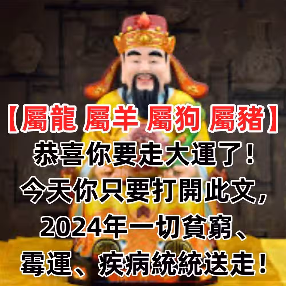 【屬龍 屬羊 屬狗 屬豬】恭喜你要走大運了!今天你只要打開此文,2024年一切貧窮、霉運、疾病統統送走!