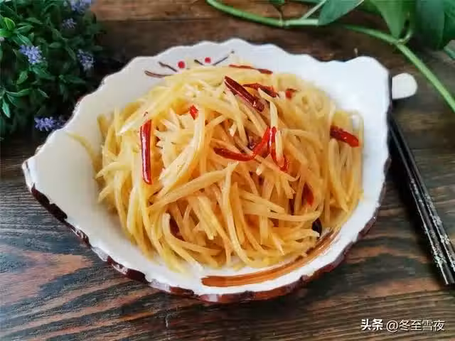 【酸辣土豆絲】所需材料:土豆2-3個、干辣椒10個左右、油鹽適量、蔥1段、大蒜2瓣、香醋1湯匙、