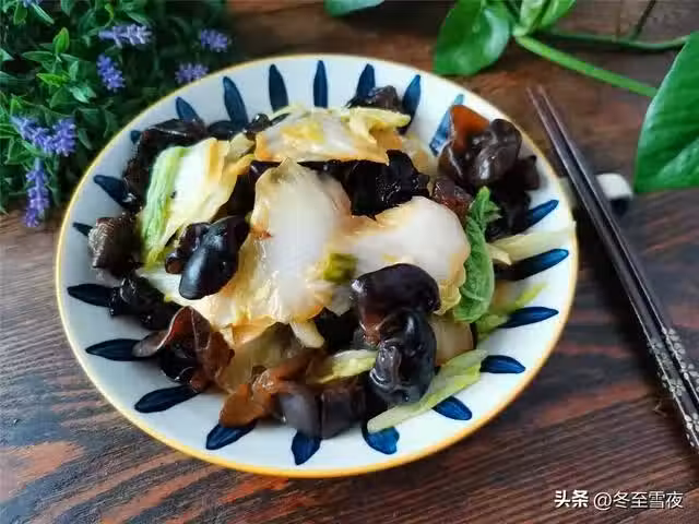 【黑白菜】所需材料:白菜心1個、黑木耳(干)1把、油鹽適量、蔥1段、大蒜2瓣、生抽1湯匙、雞精1茶匙、米醋幾滴、