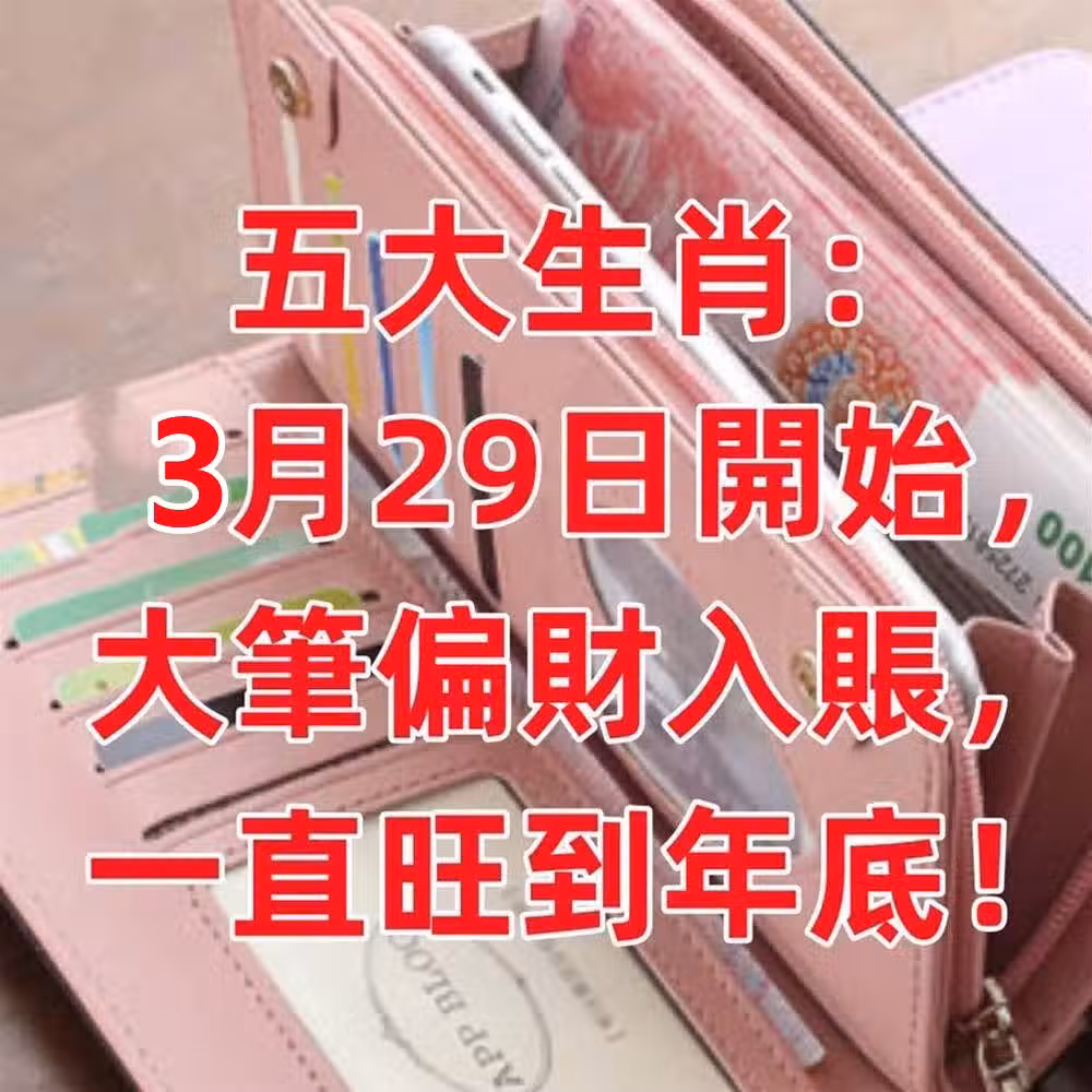 3月29日開始大筆偏財入賬,一直旺到年底的生肖!