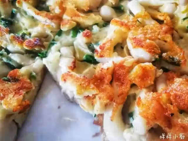 白玉菇150克、雞蛋3個、麵粉適量、胡椒粉少許、量適量、香蔥適量、食用油適量。
