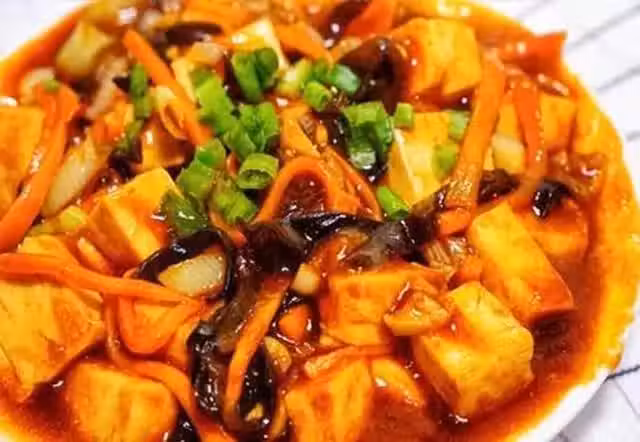 豆腐、木耳、胡蘿蔔、香蔥、大蒜、番茄醬、糖、醋、番茄醬、油、鹽。