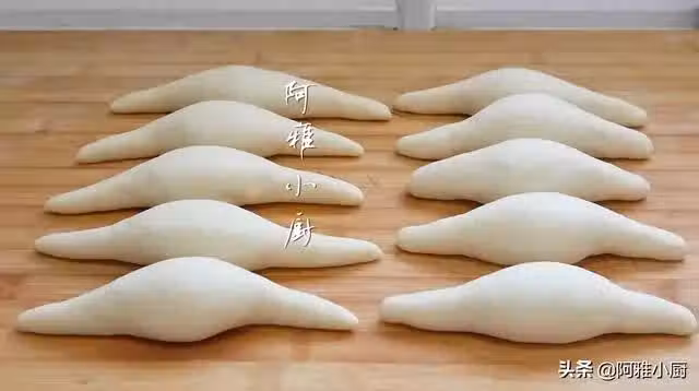 5.把劑子搓成中間粗兩頭尖的形狀,再擀薄,然後從一頭捲起來,最後的頭壓在下面,豎著按扁,這樣就行了,擀成一個小薄餅,全部做好蓋上保鮮膜二次發酵20分鐘。