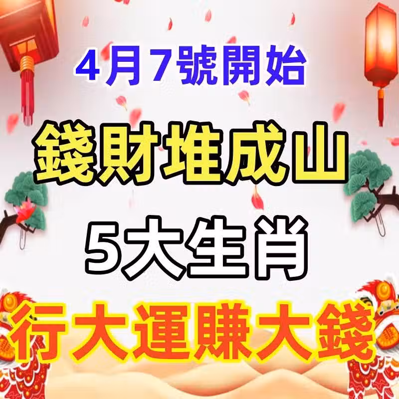 4月7號開始錢財堆成山,行大運賺大錢的生肖