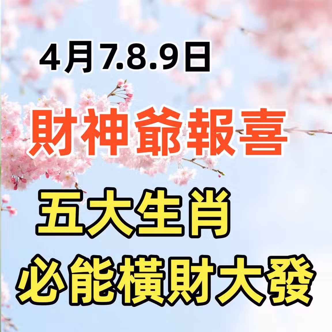 4月7.8.9日財神爺報喜,必能橫財大發的生肖