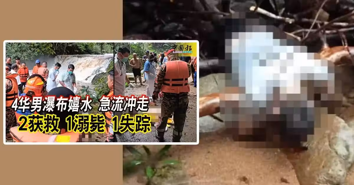 (古晉13日訊)沒有奇蹟!4名華裔男子昨日在瀑布嬉水,其中一名被急流沖走失蹤的男子,其遺體於今早被尋獲。