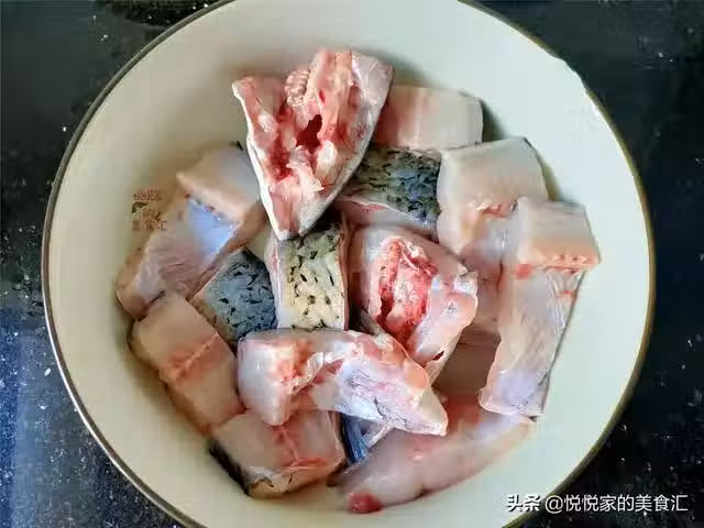 【第二步】:接下來炒鍋洗凈燒燙,放食用油,放一小勺食鹽,再把腌制好的草魚一塊一塊地放進來,轉成中小火慢慢的煎,