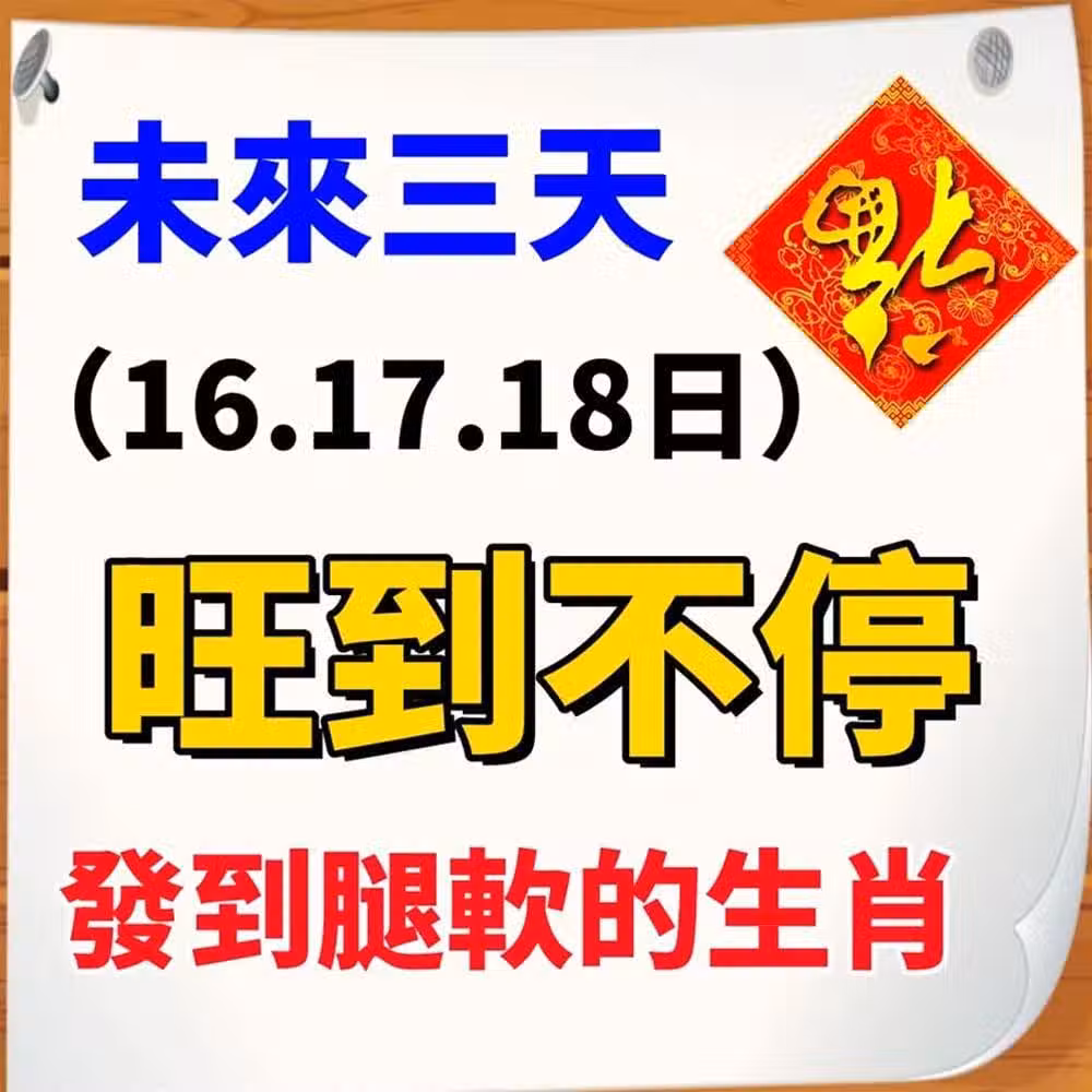 未來三天(11月16.17.18日)旺到不停,發到腿軟的生肖.