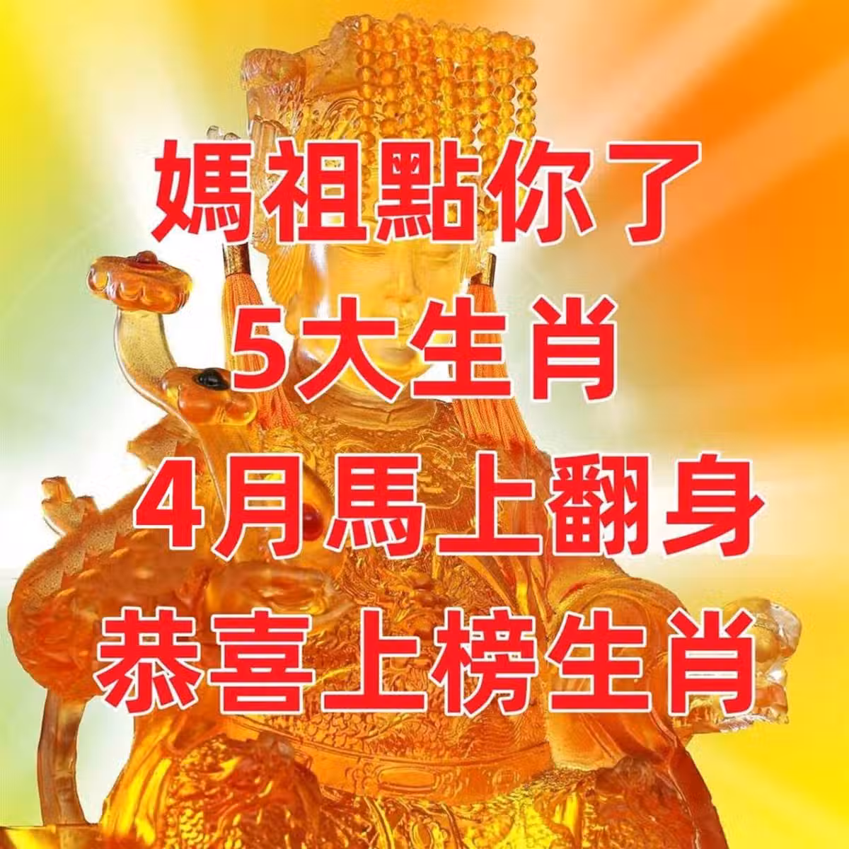 媽祖點你了!5生肖,4月馬上翻身,恭喜上榜的生肖!