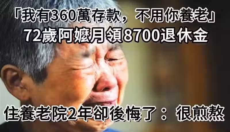 「我有360萬存款,不用你養老」!72歲阿嬤月領8700退休金 住養老院2年卻後悔了:很煎熬