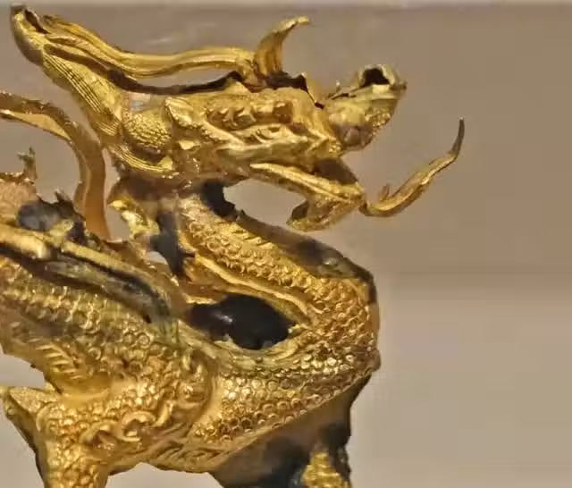 投龍儀式起源於東晉南北朝時期,唐代時尊崇道教,此儀式尤為盛行,其中武則天、唐玄宗的投龍活動最為著名。例如,武則天在嵩山投下除罪金簡,唐玄宗投向南嶽衡山祈求長生不老的銅簡。與這條金龍一同出水的還有四枚五代吳越國投龍簡,均為銀質。五代各朝沿襲唐制,吳越國錢氏諸王在投簡方面的規模堪稱歷代帝王之最。他們在杭州、越州、蘇州等地的水府山洞中投放了大量金龍和銀簡,現存九枚。