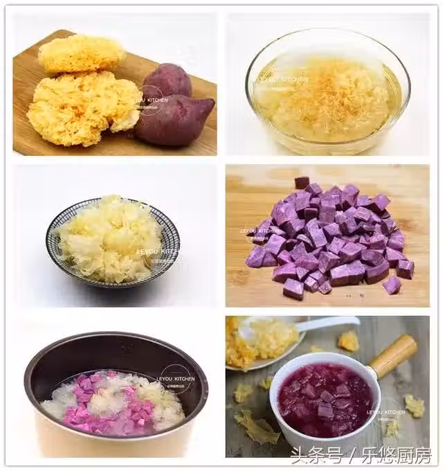 第五步:銀耳、紫薯、冰糖一起放入高壓鍋中,再倒入2000毫升清水。然後壓制30分鐘就可以了。