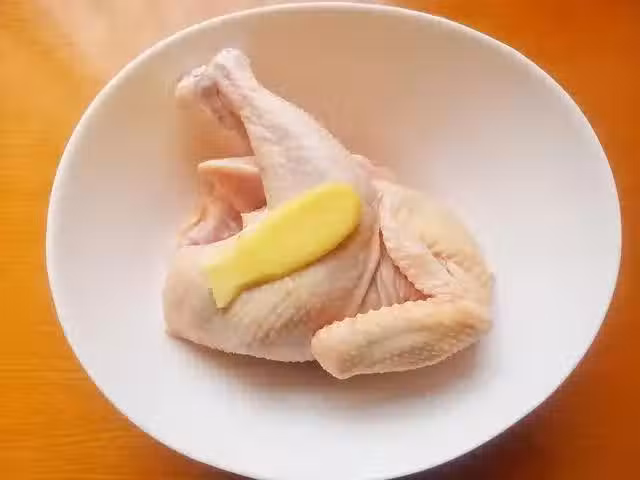 3、然後把鹽焗雞粉、玉米油、生抽和黑胡椒粉倒入盆子內,抹遍雞的全身,邊抹邊給雞來個按摩,這樣入味會快一些。里外都抹均勻後,蓋上保鮮膜,腌制1個半小時