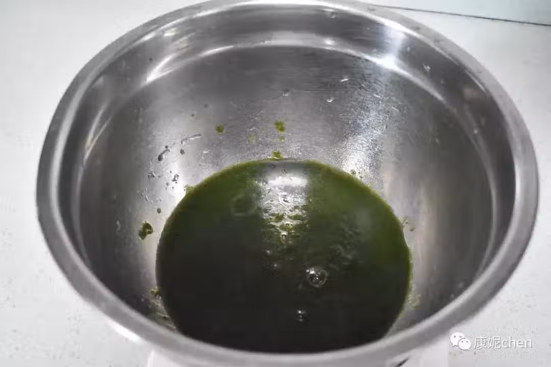 第一步 新鮮的艾葉清洗乾淨,只保留艾葉的嫩葉部分,燒開水後艾葉焯水。把100克艾葉和200克水放入破壁機,用破壁機攪拌成艾葉汁。把艾葉汁放入大容器中,放入砂糖和新鮮酵母,攪拌均勻。如果沒有新鮮酵母,可以用乾酵母粉,新鮮酵母與乾酵母按照3:1比例兌換。