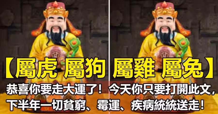 【屬虎 屬狗 屬雞 屬兔】恭喜你要走大運了!今天你只要打開此文,下半年一切的貧窮、霉運、疾病統統送走!