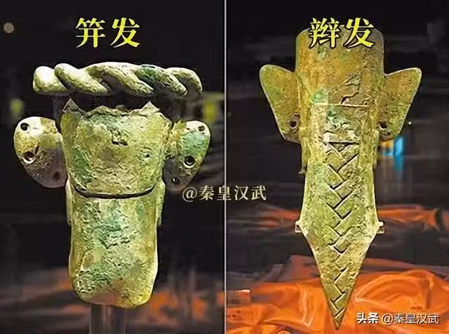 根據對三星堆出土青銅人像的大數據統計發現,祭祀坑中出土人像由辮髮和笄發兩個社群組成,二者比例為8:2,即辮髮者占大多數。但在所有表現宗教儀式場所的組合銅像中,卻全都是笄發。