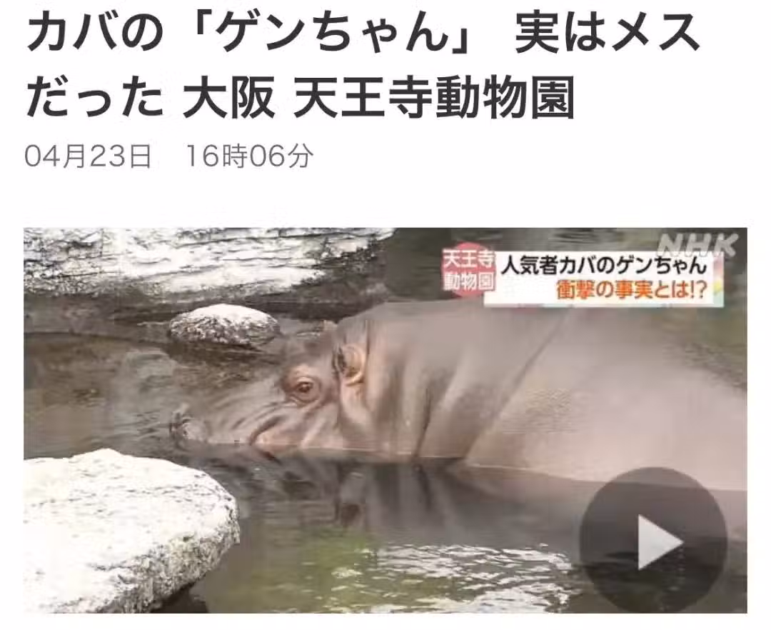 大阪市的天王寺動物園在4月18日發布公告,表示園裡最受歡迎的的河馬「小源」,從2017年自墨西哥的Africam Safari引進以來,一直都被當成是公河馬,然而隨著小源逐漸長大,飼育員發現小源並沒有表現出公河馬該有的行為,也沒辦法直接看到他的小雞雞。因此,最後園方通過外部DNA檢測,果然發現小源其實是雌性!