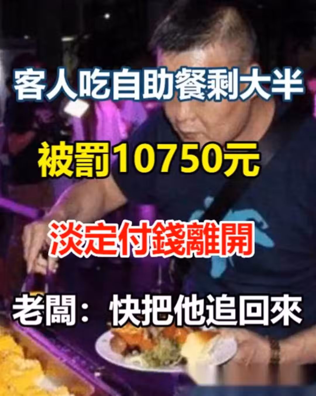 客人吃自助餐剩大半,被罰10750元,淡定付錢離開,老闆:出大事了,快把他追回來😰