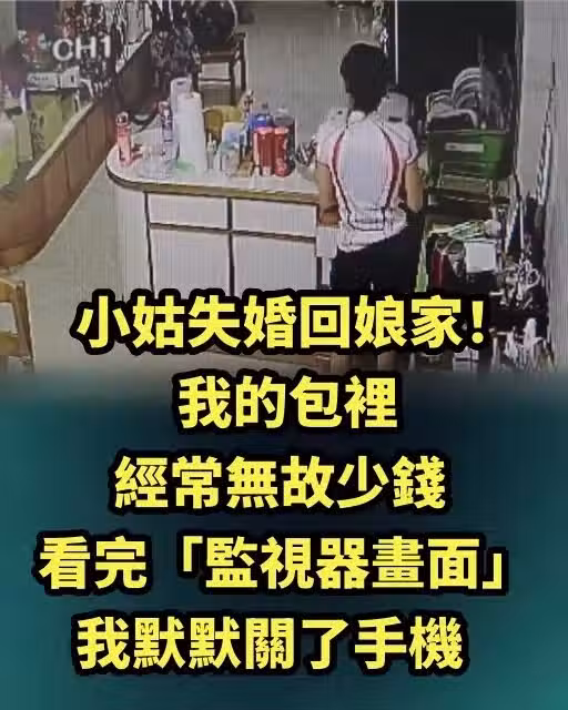小姑離了婚回娘家!我的包裡經常無故少錢,看完「監視器畫面」我默默關了手機