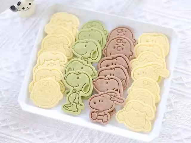 5、10分鐘後取出(此時烤箱預熱160度上下火),用卡通餅乾模具,在餅乾片上按壓出形狀來
