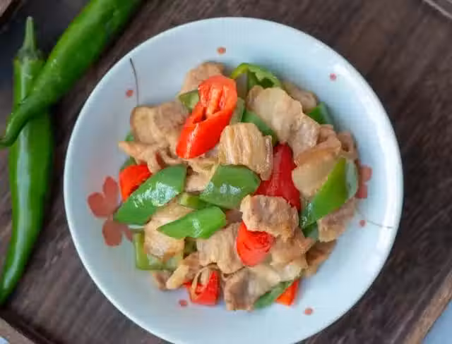 ③五花肉煸出肥油後,要把多餘的肉盛出來,不然炒好的肉片非常油膩。