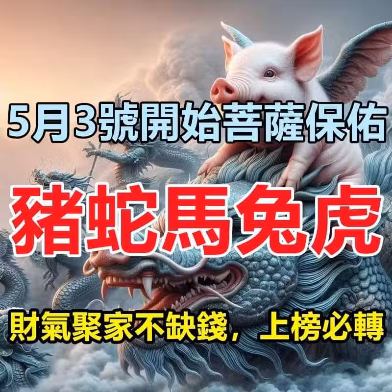 5月3號開始菩薩保佑,好消息不斷,財氣聚家不缺錢的生肖