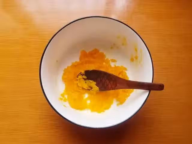 3、接著把麵粉、糯米粉、全脂無糖奶粉、細砂糖和牛奶倒入南瓜泥碗內,用筷子攪拌成絮狀後,下手揉成光滑柔軟的麵糰。溫馨提示,食譜里用的牛奶,一定要用熱牛奶,經過熱牛奶燙麵後,揉好的麵糰才會特別軟,不易乾裂,便於後續操作。