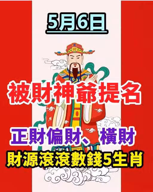 5月6日被財神爺提名,正財偏財、橫財,財源滾滾數錢5生肖