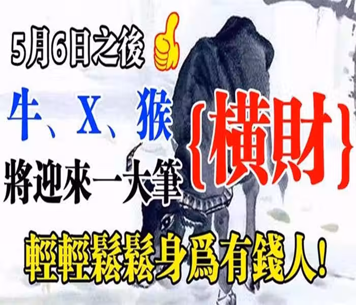 5月6日之後(牛、X、猴)將迎來一大筆橫財,輕輕鬆鬆身為有錢人