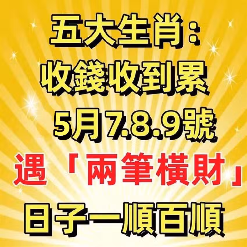 收錢收到累!5月7.8.9號遇「兩筆橫財」日子一順百順的生肖!