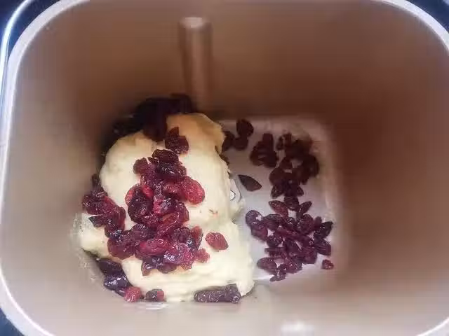 4、揉好的麵糰用手把它收圓,放在麵包機內,蓋上蓋子,靜置15分鐘。