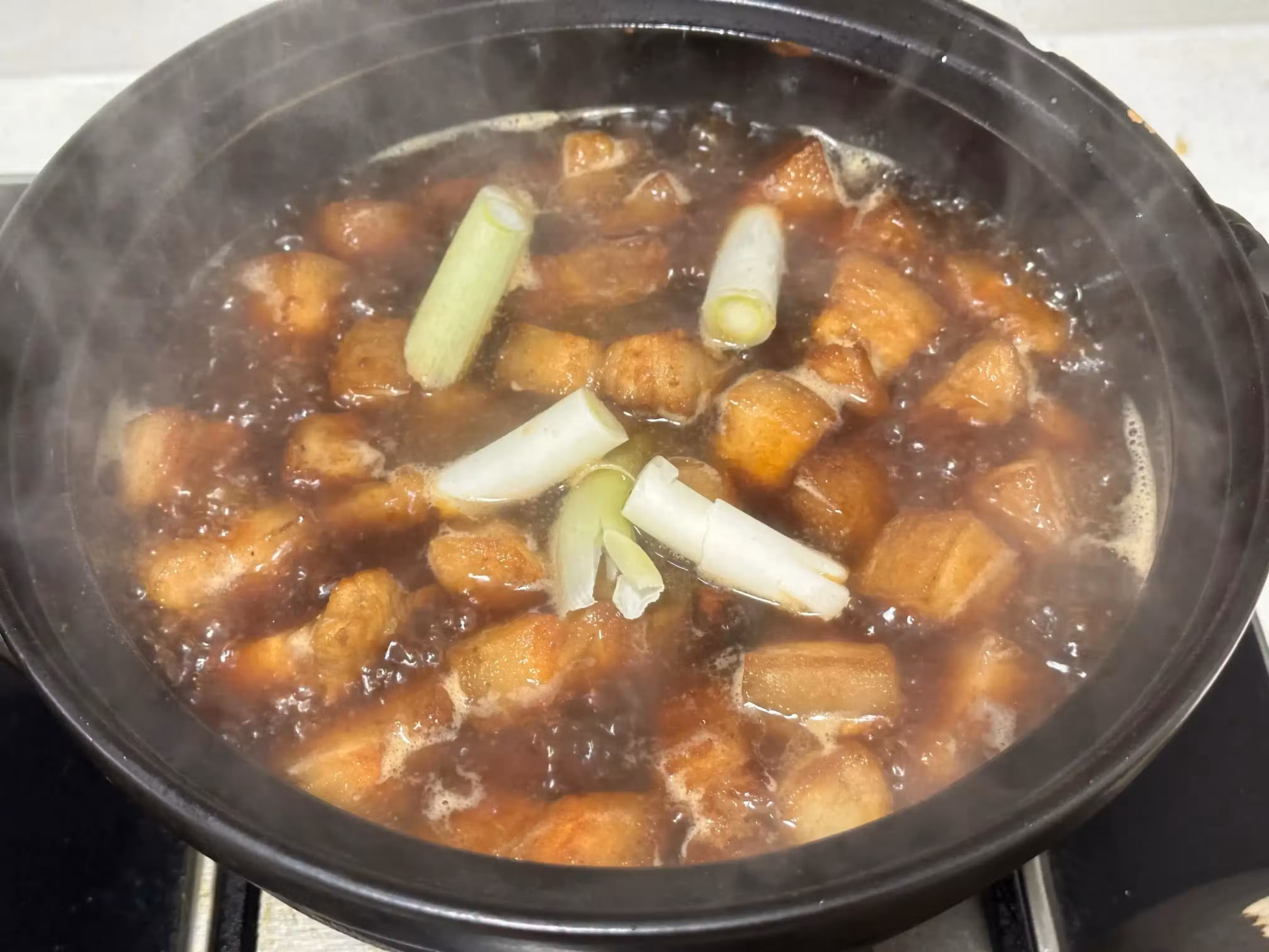 7、大約燉40-59分鐘左右,五花肉軟而不爛,大火收汁兒;燉好的肉湯汁非常濃稠,五花肉甜而不爛,就是非常好的狀態~