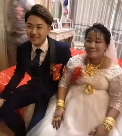 滿身都掛著金製飾品,而男方爸爸41歲,媽媽39歲,都相當不想兒子娶富婆回家。