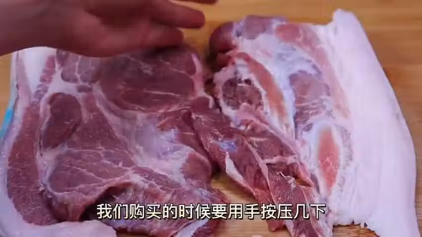 大家在挑選豬肉時,一定要用手按壓肉質,新鮮的豬肉是油潤的,沒有異味,摸上去有彈性,而注水肉則濕漉漉的