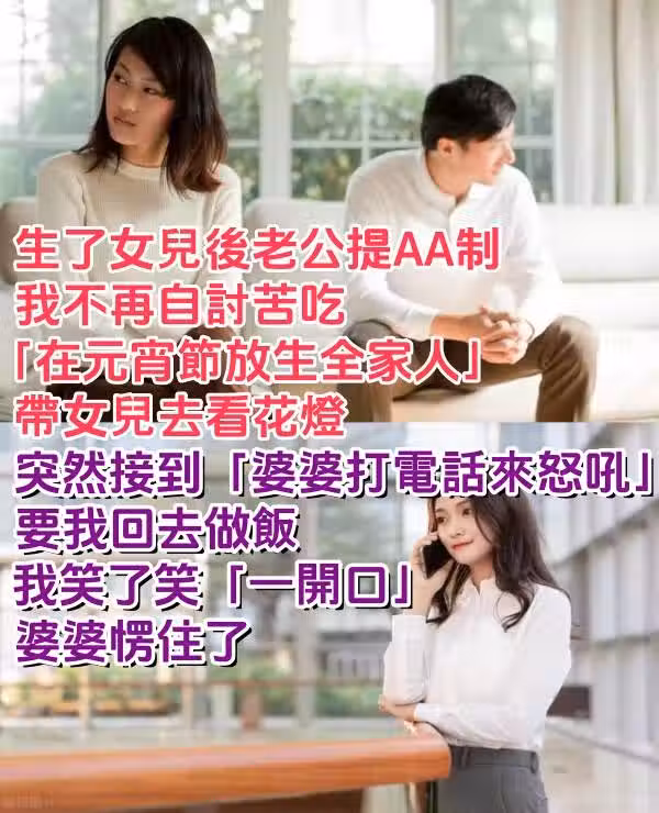 生了女兒後老公提AA制!我不再自討苦吃「在元宵節放生全家人」帶女兒去看花燈 突然接到「婆婆打電話來怒吼」要我回去做飯,我笑了笑「一開口」婆婆愣住了~