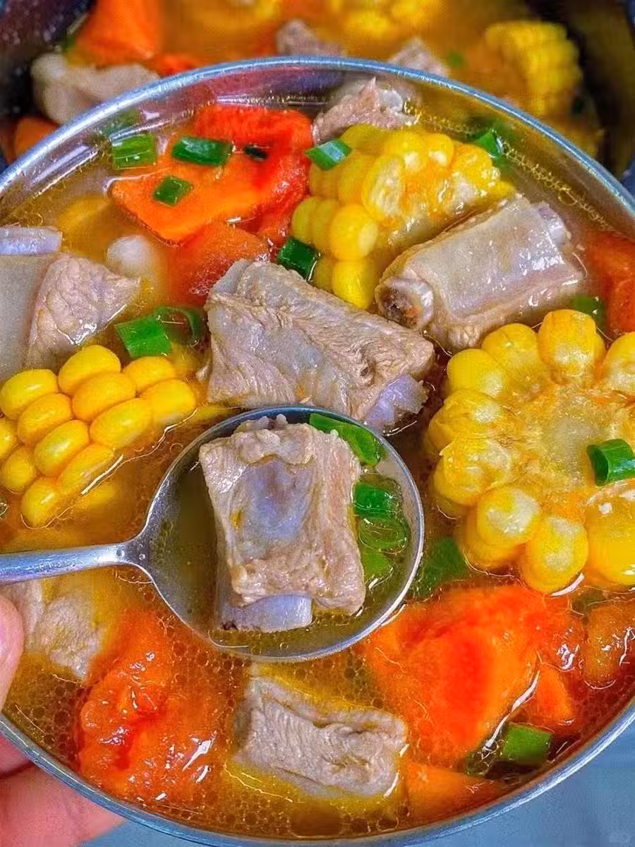 番茄玉米排骨湯,美味又養生,簡單易做,味道絕了!