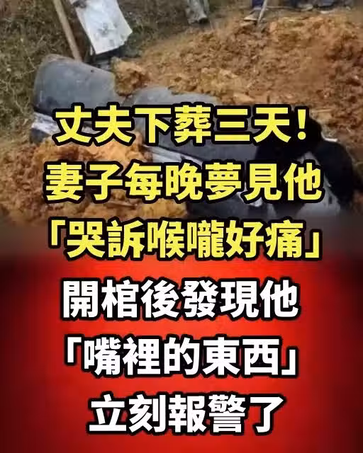 丈夫下葬三天!妻子每天晚上夢見他「哭訴喉嚨好痛」開棺後發現他「嘴裡的東西」立刻報警了