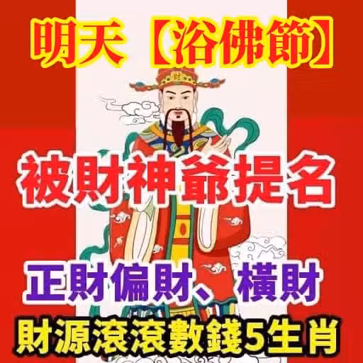 明天【浴佛節】被財神爺提名,正財偏財、橫財,財源滾滾數錢