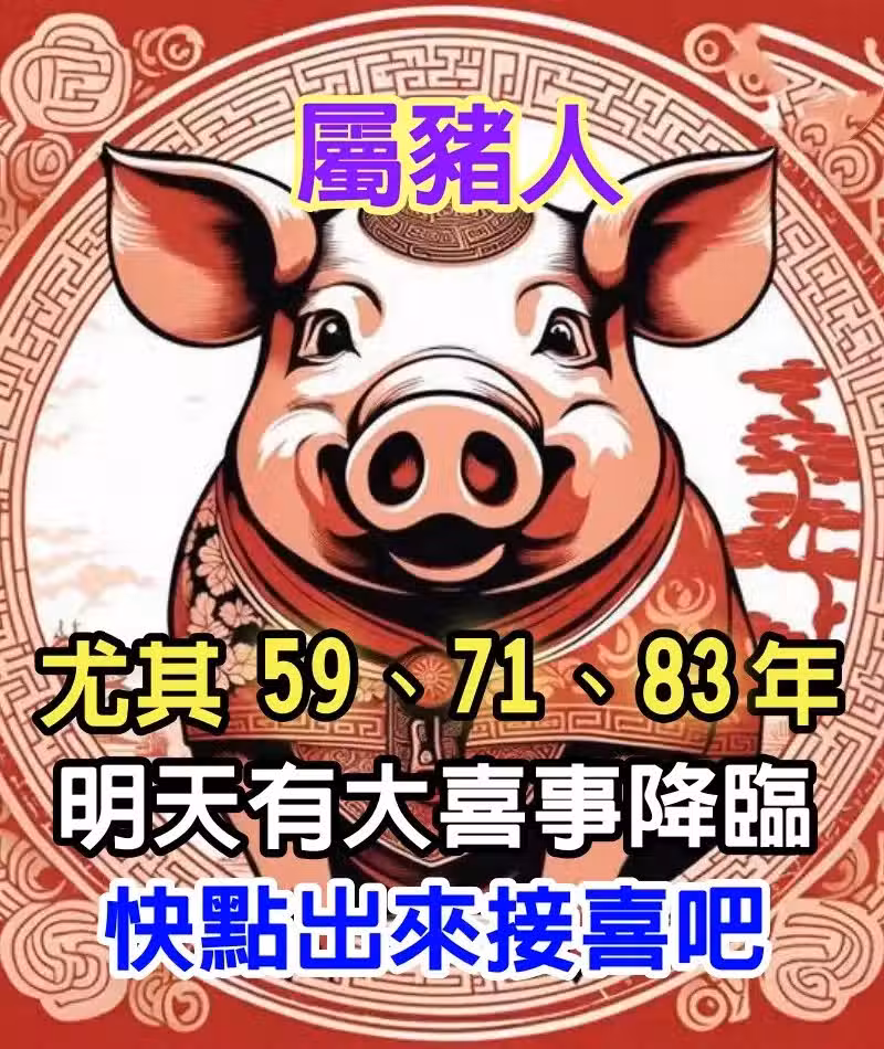 生於1959年的肖豬人,天資聰穎,做事善始善終,樂觀積極,有吉星高照之運勢!