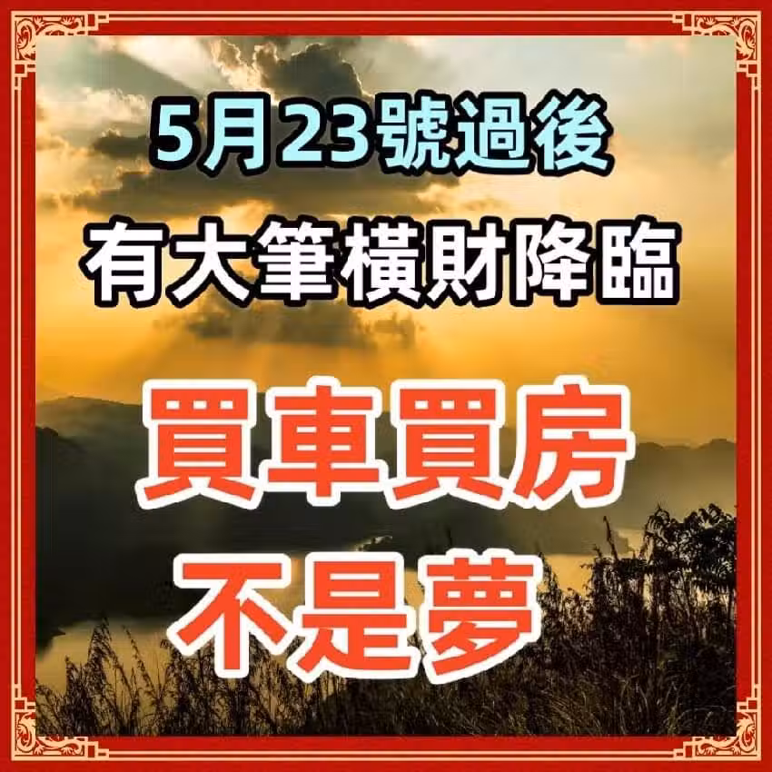 5月23號過後有大筆橫財降臨,買車買房不是夢