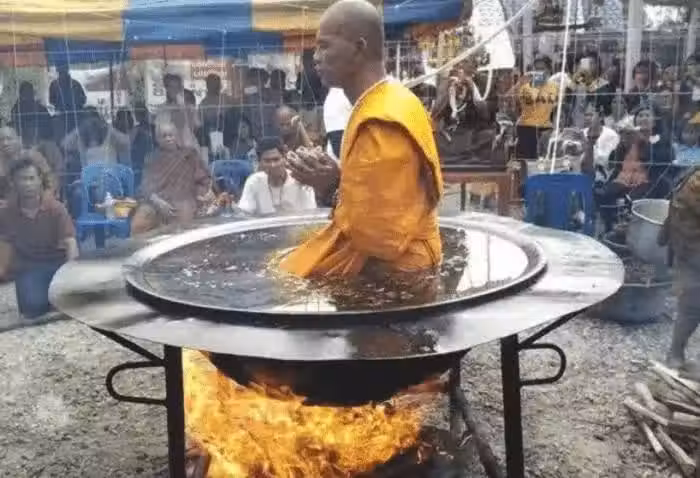 其實這位僧人只是想博人眼球,他確實是在油鍋里坐著的,但是這個鍋卻是經過特殊處理的,進去以後根本不會感覺到任何不適。
