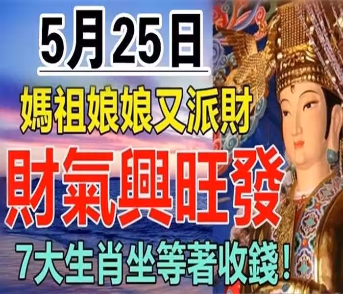 媽祖娘娘又派財,5月25日財氣興旺發,七大生肖坐等著收錢
