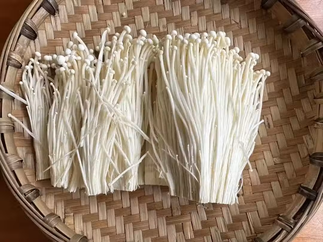 2、金針菇先清洗乾淨之後,開水下鍋焯水。很多小夥伴說做的金針菇塞牙咬不動,其實是煮的時間太久了,金針菇開水入鍋之後,煮開就可以撈出來了,這樣的口感是最好的。撈出來瀝干水分,放在碗中,把香菜也加進去;