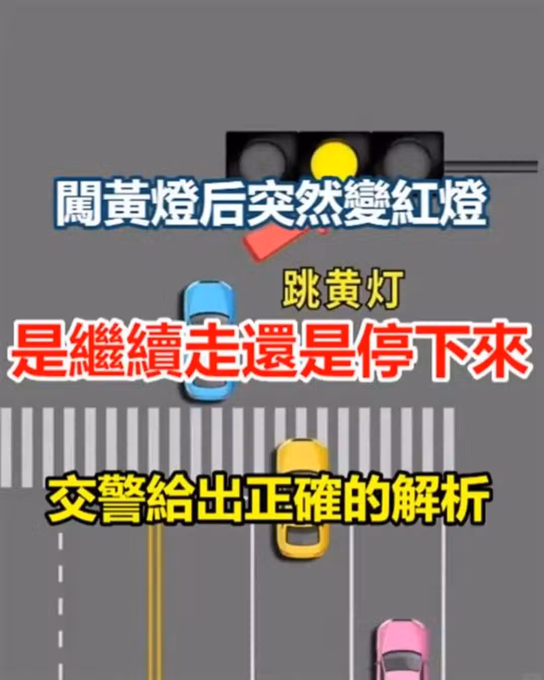 闖黃燈後突然變紅燈,是繼續走還是停下來!交警給出正確的解析!